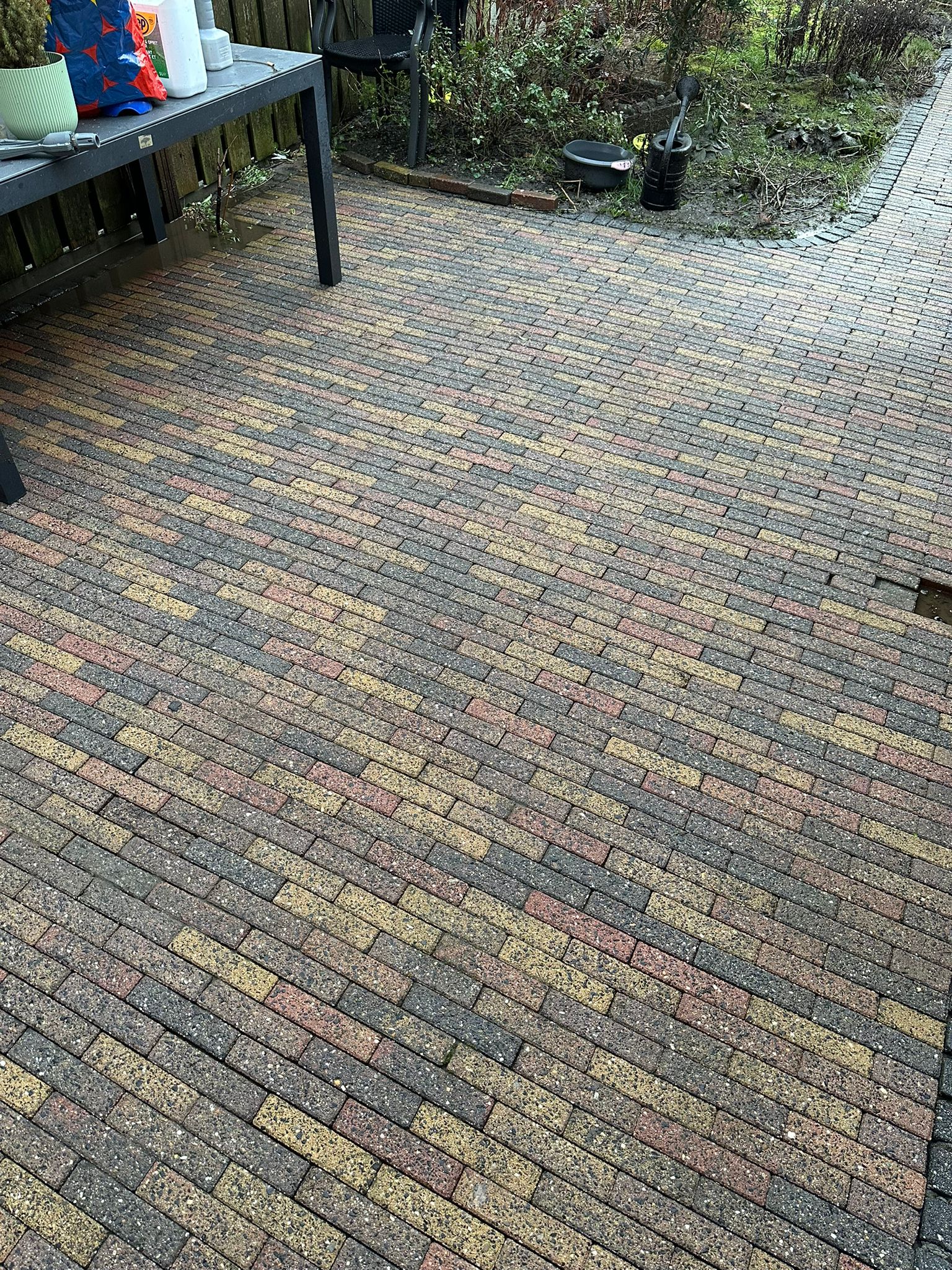 Een terras reinigen of oprit reinigen vraagt om de juiste techniek. Met professionele apparatuur verwijderen wij hardnekkige aanslag, olieplekken, zand en weersvervuiling van klinkers, beton en natuursteen. Zo blijft uw terras langer schoon en behoudt uw bestrating zijn kwaliteit.
